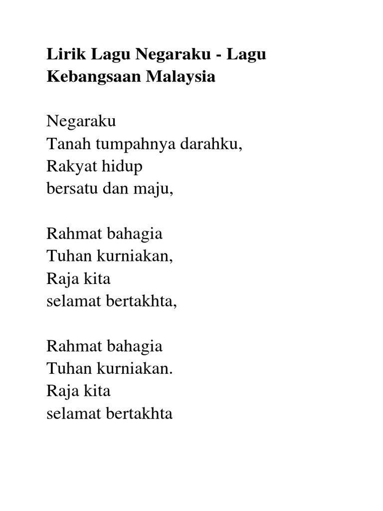 Lirik Lagu Negaraku Lagu Kebangsaan Malaysia Pdf